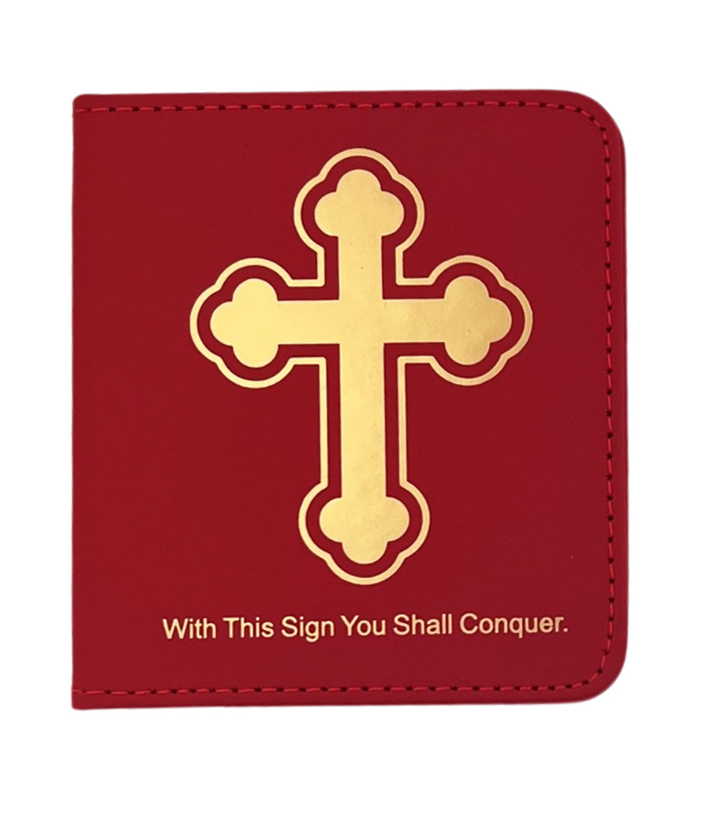 • Gold Foiled Details: Adorned with a stunning cross on the front and the phrase, “With This Sign You Shall Conquer” on the back, alongside intricate church domes embellished with the words “Faith, Hope, Love.” Cross domes and signs are gold foil