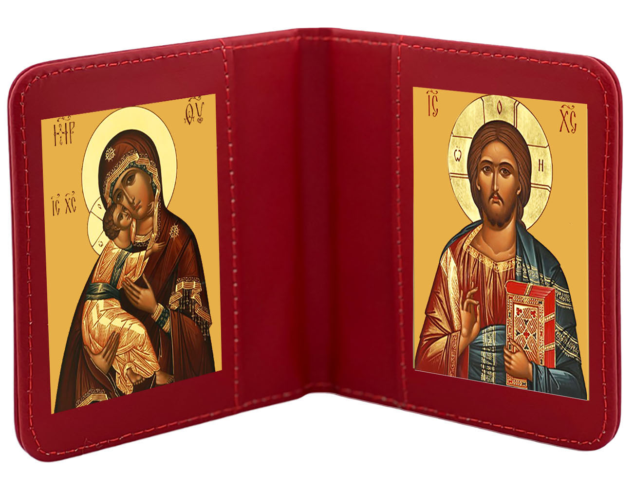 Traveling Icon Diptych - Book Virgin of Vladimir & Christ The Teacher - Traveling Faith - Leatherette Case