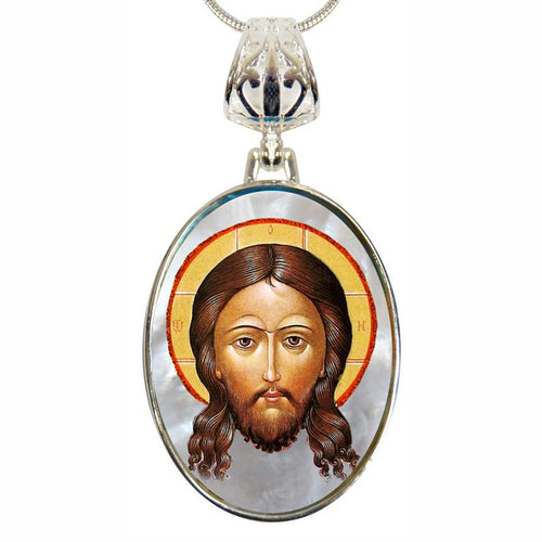 Icon of The Holy Face Silver Plated Mother of Pearl Necklace Jewelry
