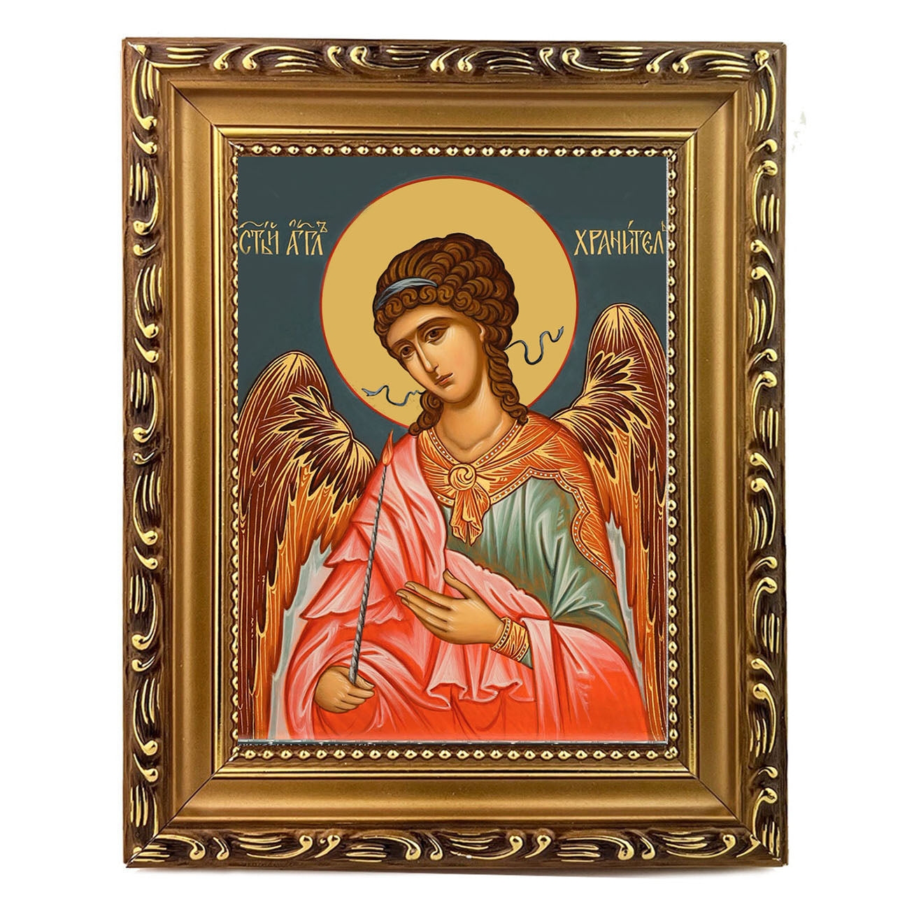 Guardian Angel Icon - Wooden Frame - Wall Hanging With Stand 7 3/4 Inch tall