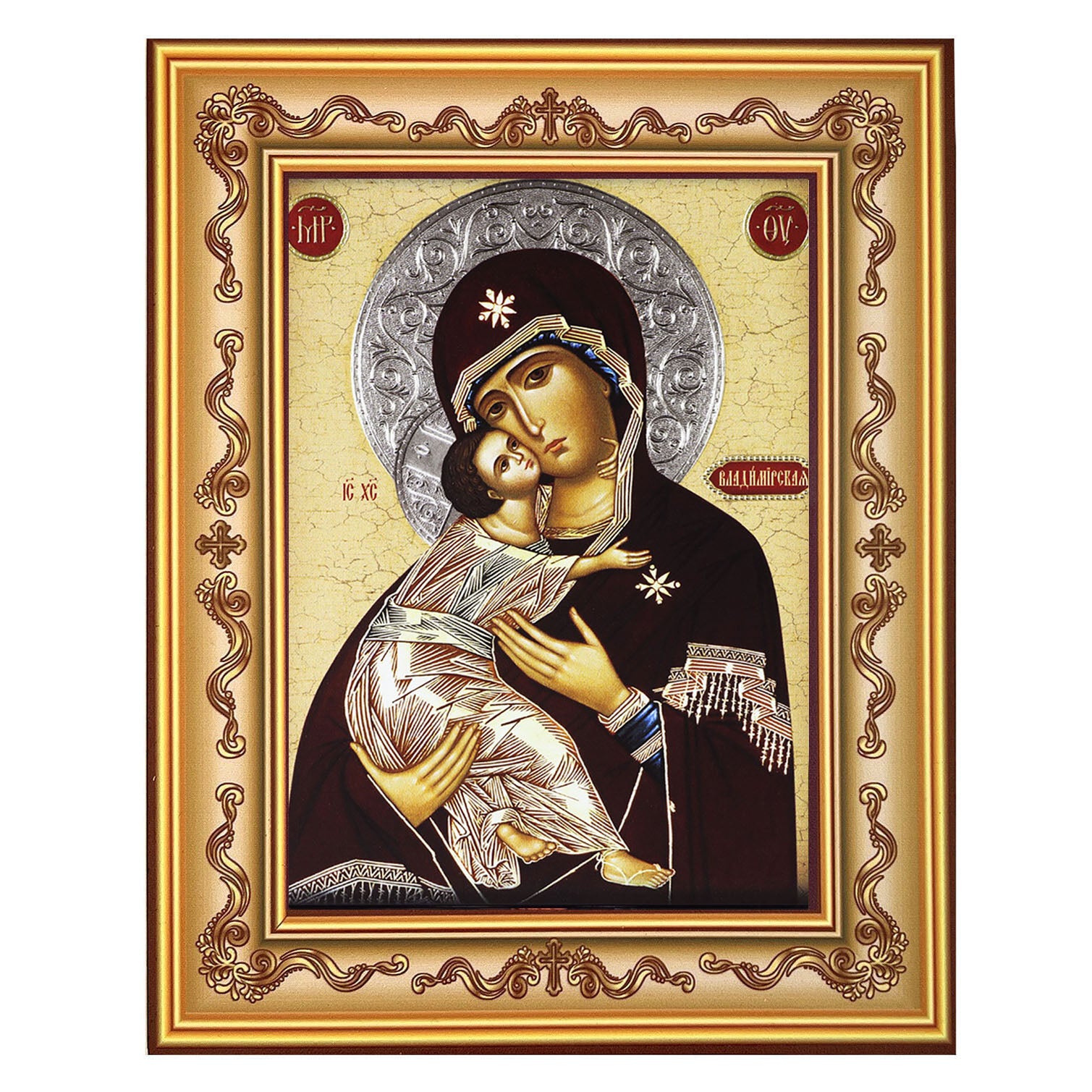 Virgin of Vladimir Icon in Wooden Frame - Wall Hanging with Stand 7 3/4 Inch tall