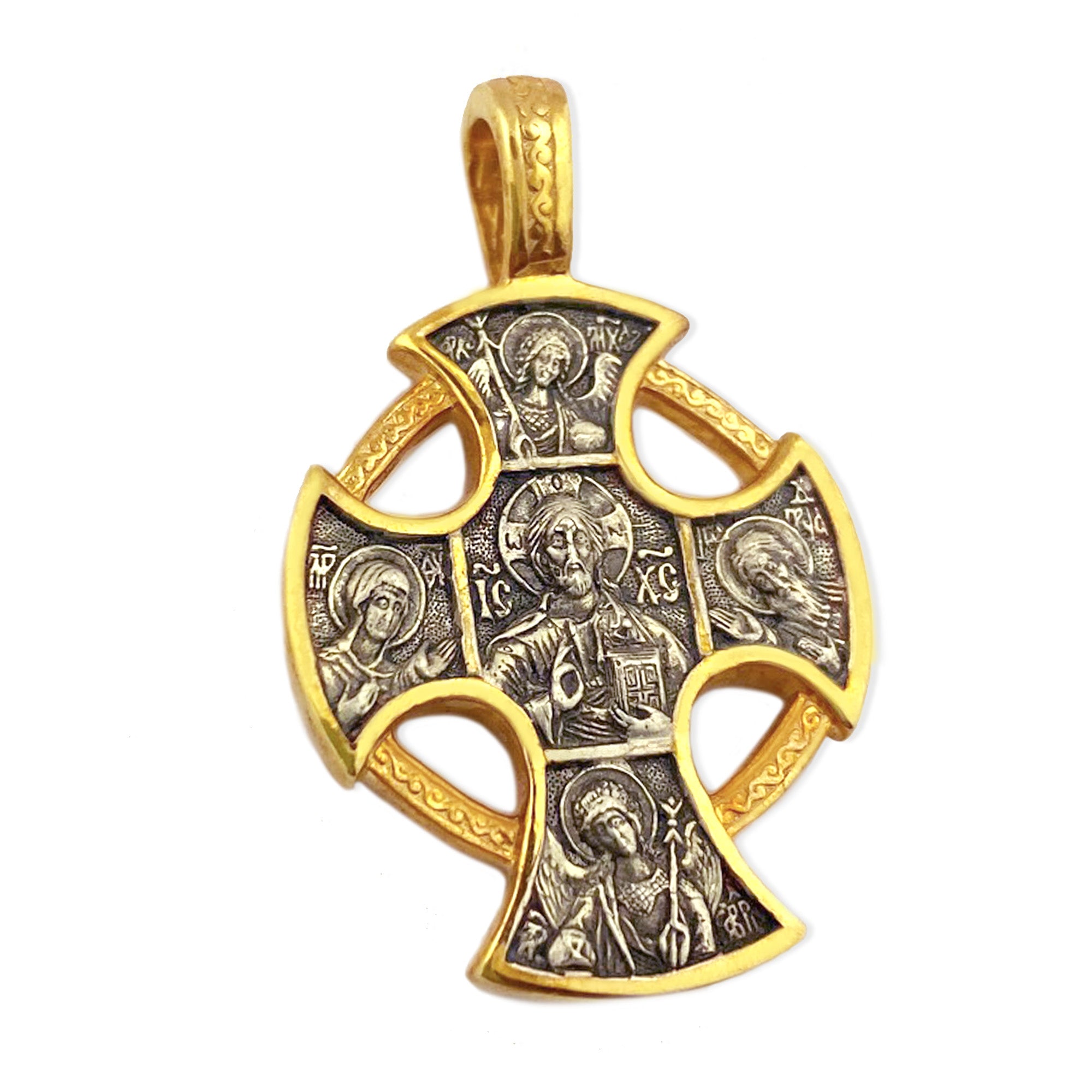 - Icon Cross Pendant - St Saint Michael Gabriel Nicholas Silver Gold Plate Protection Cross - Gold Plate over .925 Sterling Silver Icon Pendant
