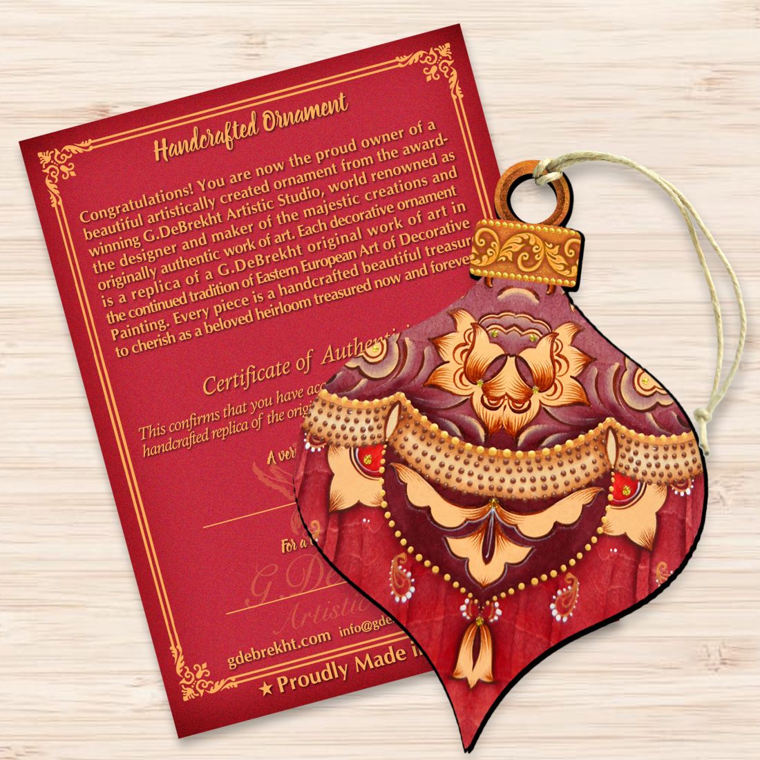 About Collection: Those hand-crafted Keepsake Wooden Ornaments are created with the utmost attention to detail. Inspired by G.DeBrekht old art technique and produced from the best quality Birch Plywood. The ornaments are the perfect addition to the Holiday Home decoration or the ideal addition to your DIY project. Decorating a home is a particular time for all families, so create your Holiday Gallery for all your friends and family to enjoy by collecting the unique style of G.DeBrekht Artistic Studios. Please check out our collections which include - classic Christmas art, Winter wonderlands, and Nativity Art- all of which are available in approximate size: 5 x 5.5 x 0.25 inches. This product is made from high-quality plywood, which makes it both sturdy and lightweight. UV protective coating makes this product weather resistant and can be used indoors and outdoors. 100% hand-crafted in the USA